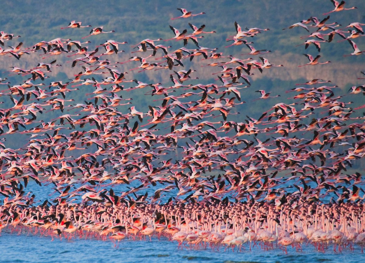 Typically they can be seen at Lake Manyara from June to September, and again from January to March. This sight is a photographer’s dream and possibly one of the prettiest migrations, especially at sunrise or sunset when the sky turns shades of pink and orange providing a picture-perfect backdrop for the flamboyantly coloured birds.