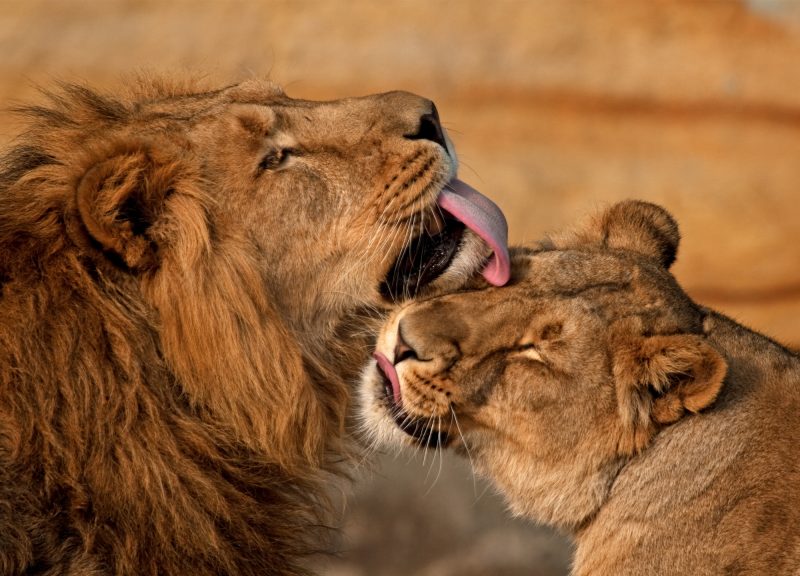 They are the second largest living cats after tigers. Males are unique among the cat species for their thick mane of brown or black hair encircling their head and neck. The mane darkens with age, and the thicker and darker a mane is the healthier the lion. Antelope, zebra, and wildebeests are common prey for this big cat, however, scavenged food provides more than 50% of their diets. Lions will often take over kills made by other carnivores and cooperative hunting enables them to take down prey as large as buffaloes, rhinos, hippos, and giraffes.