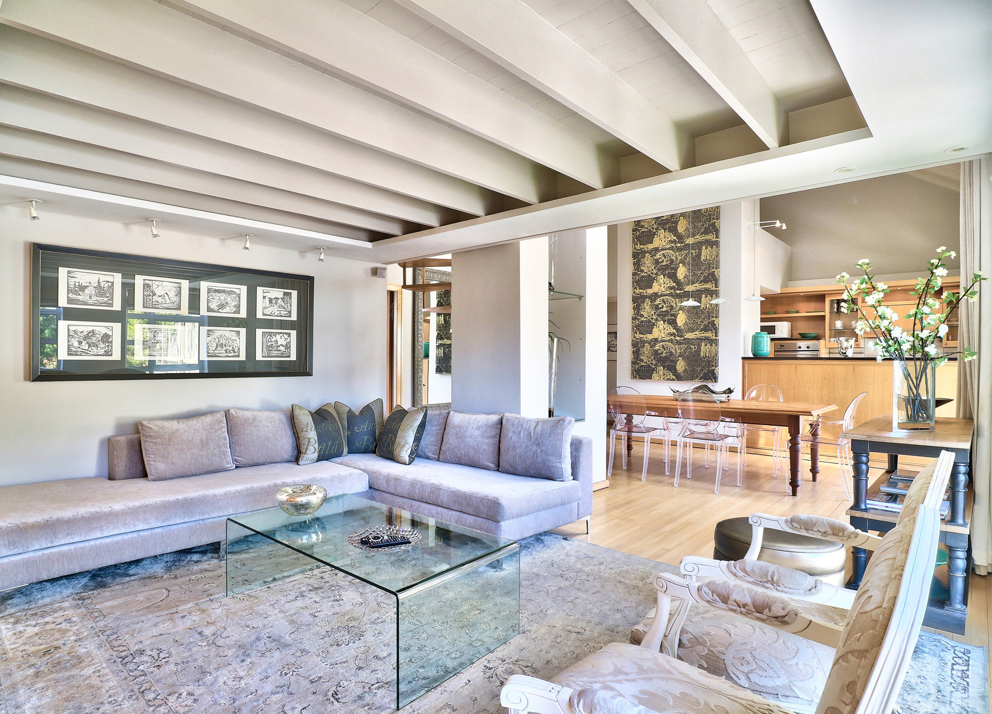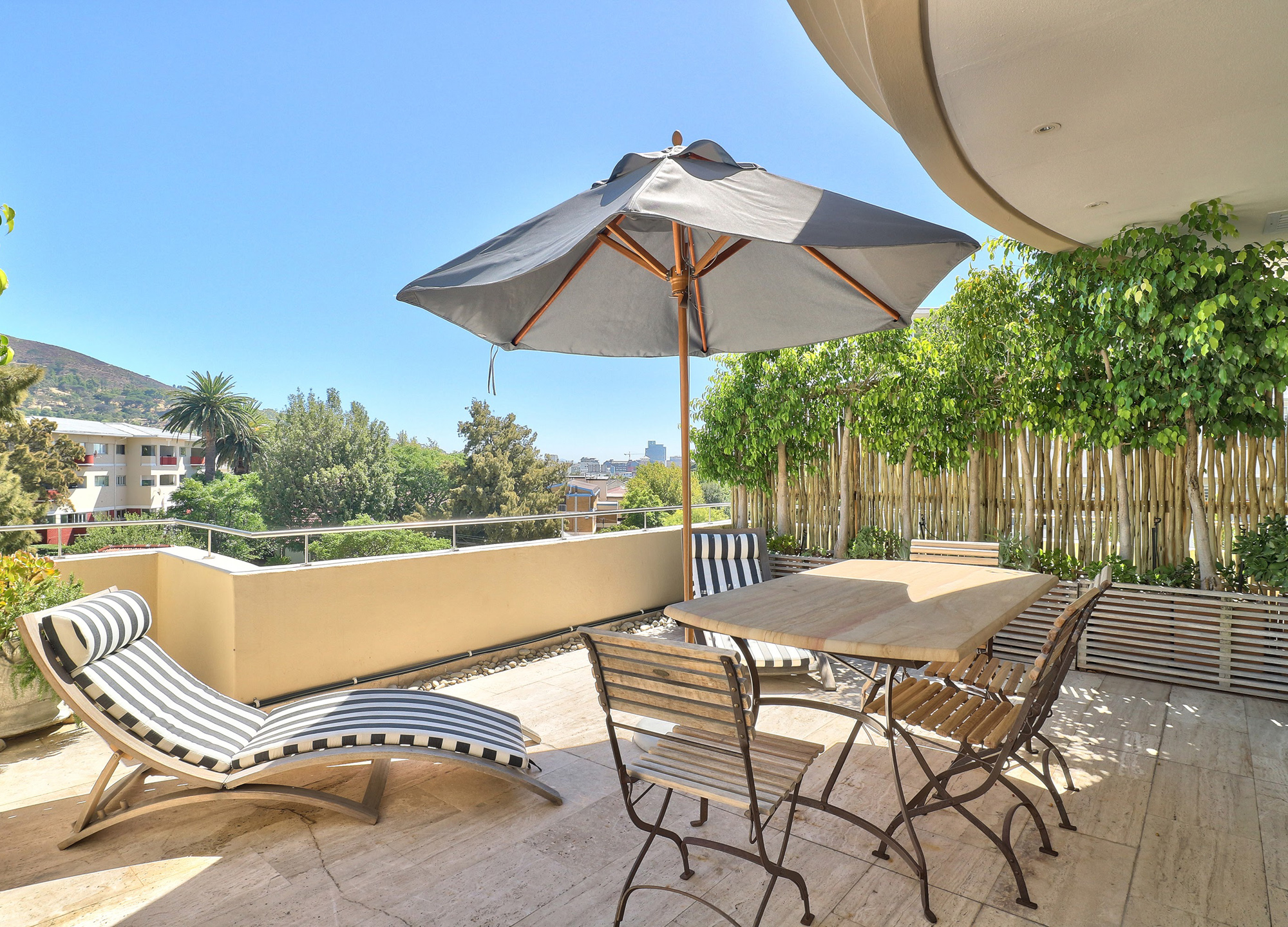 Palmkloof Penthouse is arguably one of Cape Town’s most stylish new private pads, with magnificent views towards Signal Hill from the spacious patio and overlooking Table Mountain from the south side. Décor has been thoughtfully selected with great attention to detail and natural light flows throughout the apartment. A colour scheme that is calming yet refreshing creates a contemporary South African private stay experience for the discerning traveller.