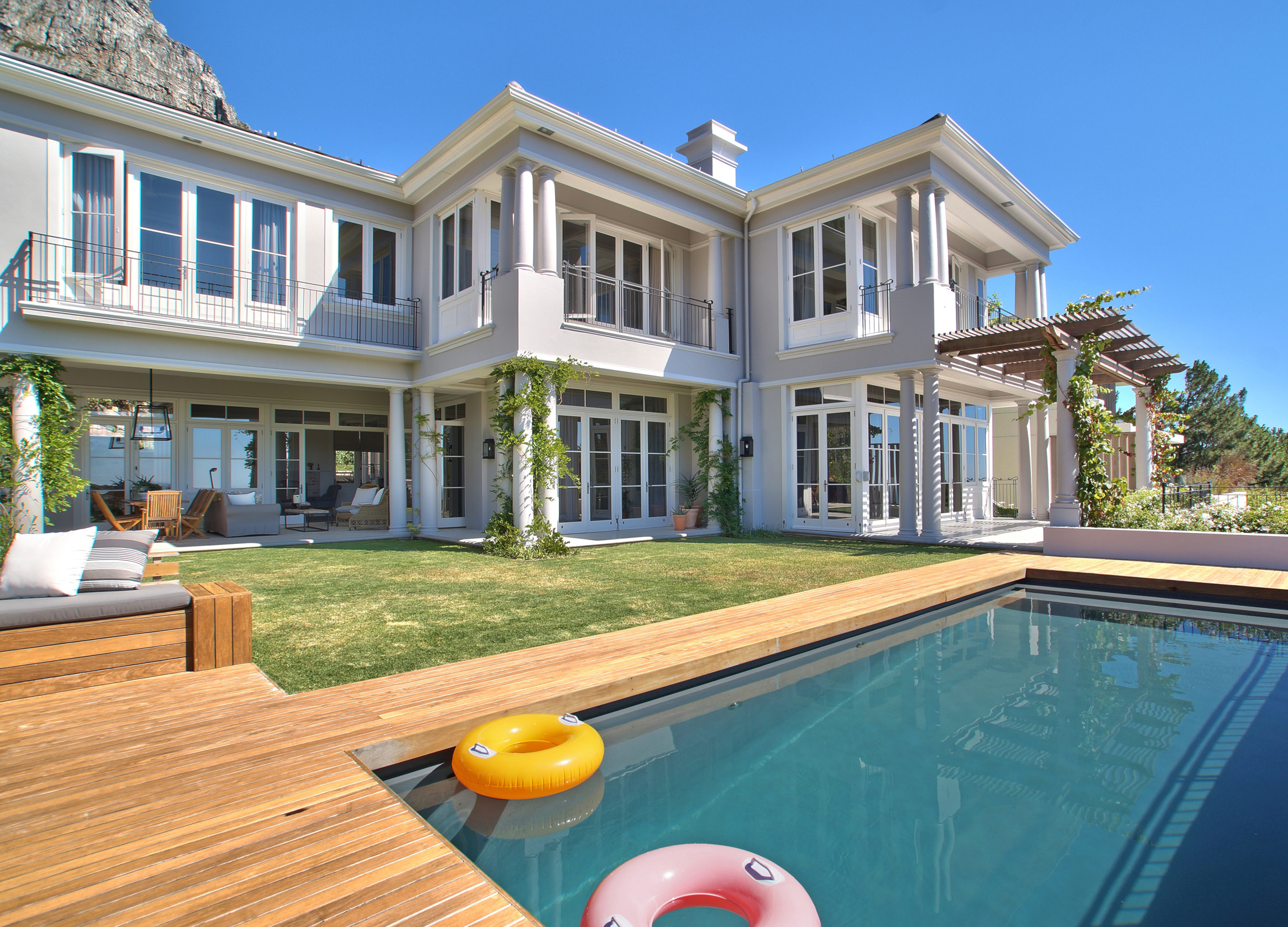 With majestic Table Mountain behind it and the Atlantic Ocean beckoning below, this stylish villa in wind-free Dal Road offers a superb location for enjoying all that the Mother City has to offer. Both the decor and the view will take your breath away!
