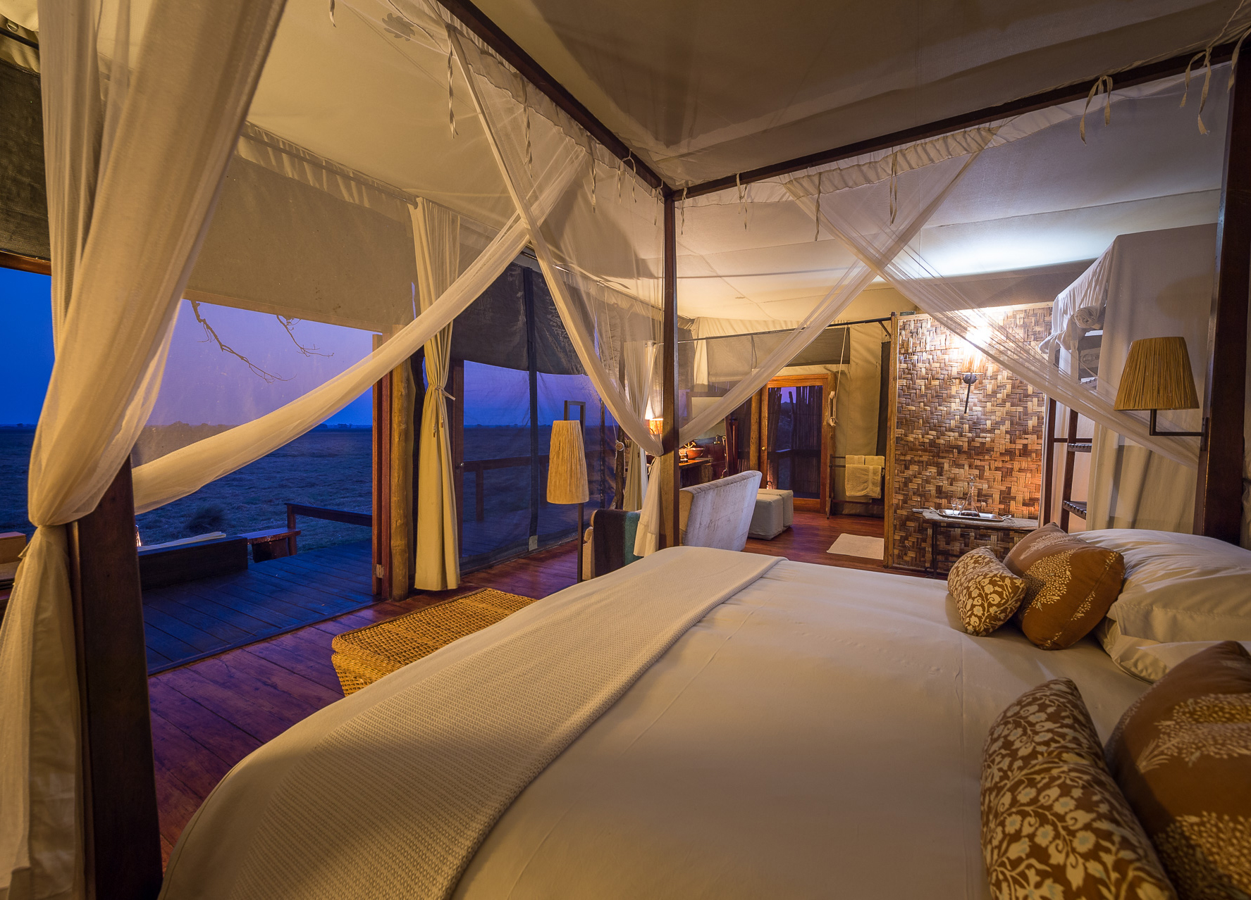 Shumba is an elegant luxury tented safari camp situated on a treed island in Zambia’s breathtaking Busanga Plains. Featuring six stylish units raised on wooden platforms with spectacular views of the surrounding plains, enriched with Wilderness’s signature luxury touches in the remotest surrounds. The area is renowned as a hotspot for plains game, followed by lion, wild dog and cheetah.