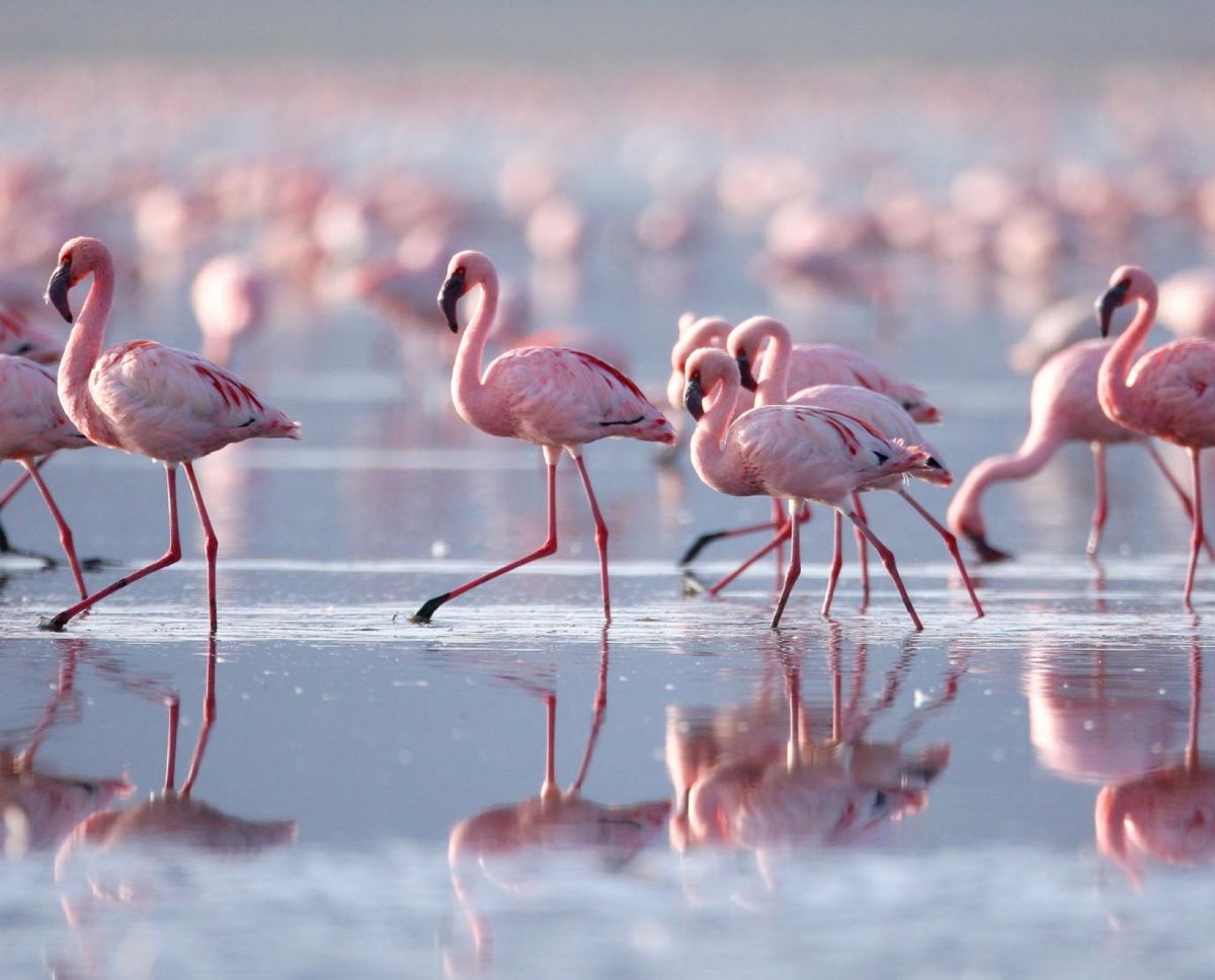 In March the rains bring about a dramatic change to the normally barren and desolate Kalahari. There is a sudden influx of birdlife, and impossibly large flocks of flamingoes can be seen wading in the muddy waters left by the rains. The change in conditions also brings migrations of buffalo, elephant, springbok, wildebeest and zebra, resulting in an unforgettable viewing experience.